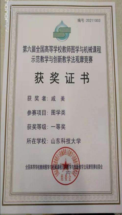 点击:2021年7月9日-11日,第六届全国高等学校教师图学与机械课程示范教学与创新教学法观摩竞赛在南通大学举行。我院戚美教授参加了此次比赛,其丰富的教学内容、灵活的教学方法、扎实的教学基本功及优秀的课件制作得到专家和评委的肯定,获得图学类全国一等奖(第3名),充分展现了我校教师热爱教学、勇于创新的风采,为学校争得了荣誉。