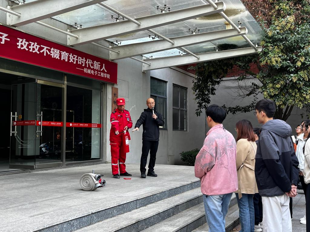 演练前,澳门永利6774学工办主任樊玉华向学生说明了火灾预防和提高应急处置能力的重要性。随后,陈浩向师生详细讲解了消防技巧、自救方法及常用消防设备的使用方法。