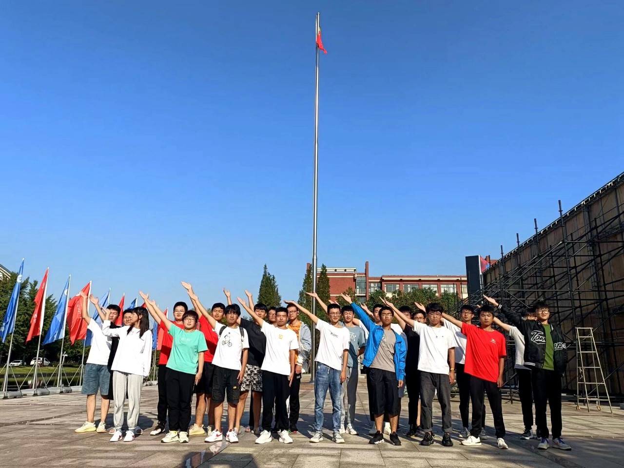 “我与国旗同框,我向祖国告白。”本次国庆活动激发了机电学子的爱国热情,提升了同学们对祖国的自豪感,坚定了他们为祖国建设而奋斗的信念。(通讯员:高强)