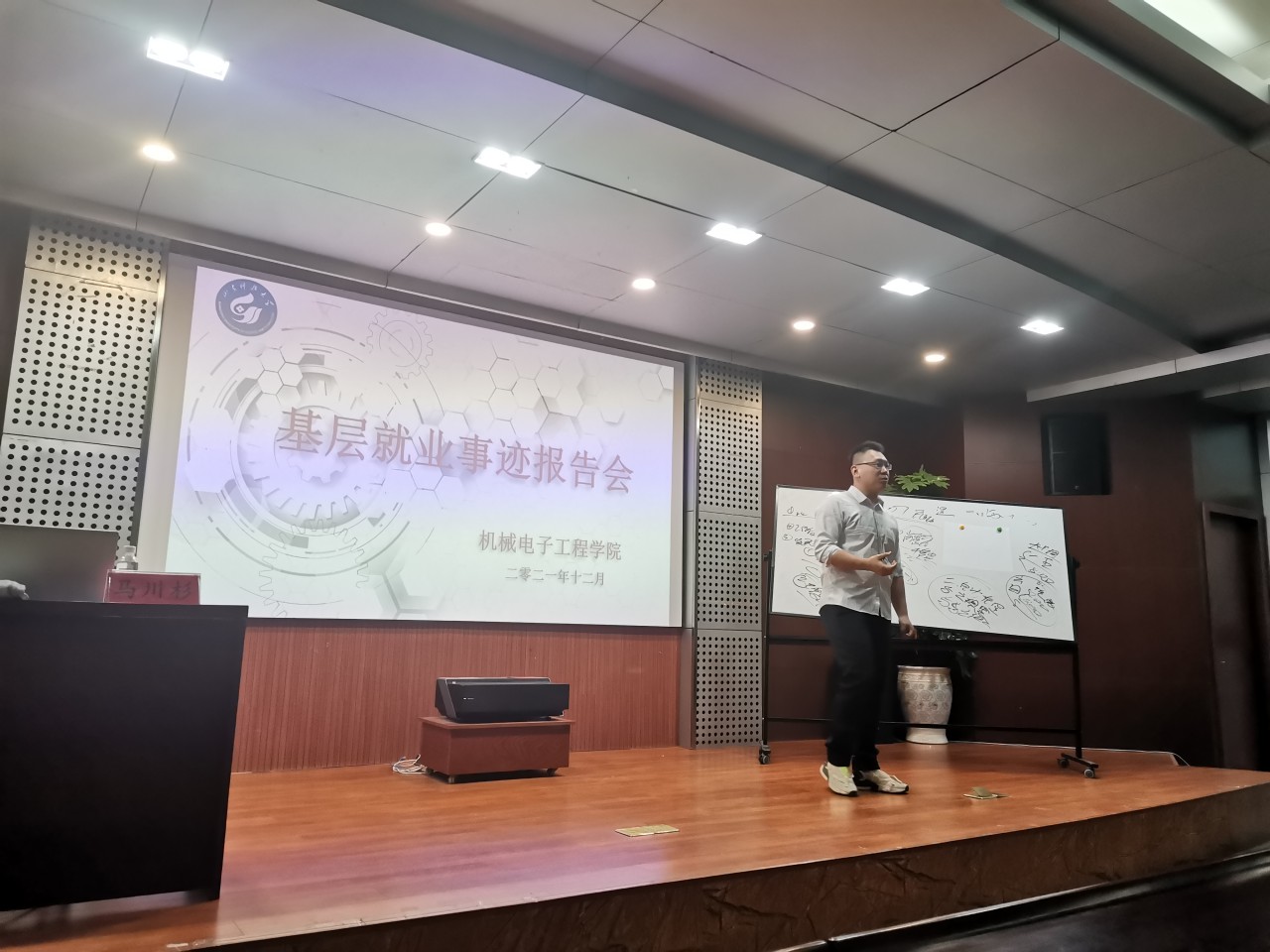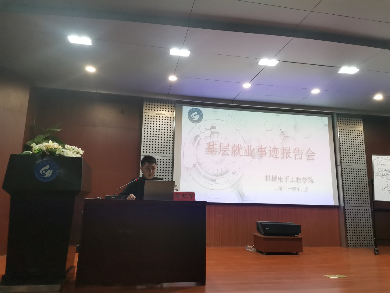 点击:为广泛宣传基层就业毕业生的先进事迹和优秀品质,积极营造“到基层去、到祖国最需要的地方去”建功立业、成长成才的良好氛围,12月4日下午,澳门永利6774在学院楼报告厅举办基层就业事迹报告会,澳门永利6774材料成型及控制工程2019届校友马川杉、机械电子工程专业2019届校友徐凯军作事迹报告。澳门永利6774学工办主任樊玉华出席报告会,报告会由辅导员孟凡宝主持。
