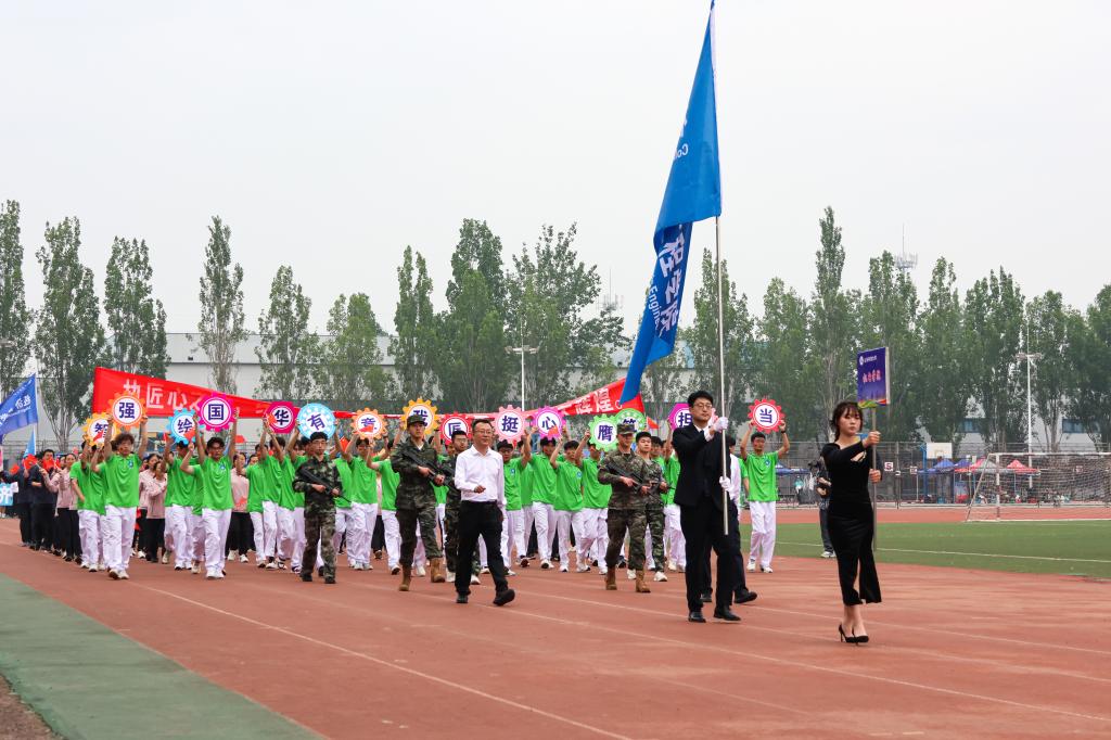 在5月14日的开幕式盛典中,澳门永利6774方队以昂扬姿态惊艳亮相。200余名师生身着统一服装,踏着《运动员进行曲》的铿锵节拍,以整齐划一的步伐通过主席台。方阵成员高举齿轮状手持板,随音乐节奏变换出“匠心筑梦,智绘华章; 强国有我,挺膺担当”字样,自信的笑容与矫健的身姿彰显出学院锐意进取的精神风貌。