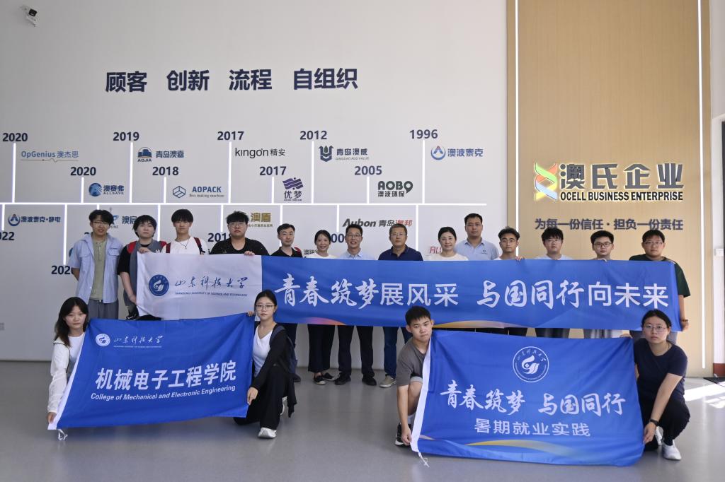 为深化校企协同共建,拓宽毕业生就业渠道,全面提升2026届毕业生就业质量,8月21日,澳门永利6774党委书记陈猛、学工办主任(团委书记)樊玉华、辅导员宋阔、马文豪带领2026届本科毕业生代表,赴青岛澳波泰克自动化有限公司开展访企拓岗暨暑期就业实践活动。